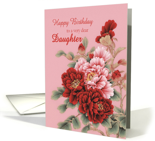 A delightful illustration of pink and red peonies to wish your daughter a happy birthday. This card is full of love, and elegant and classy at the same time.