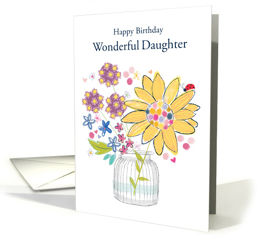 Celebrate a wonderful daughter with this cheerful birthday greeting. Bright sunflowers, playful blossoms and a sweet ladybug detail make it a joyful way to send love and warm wishes on her special day.