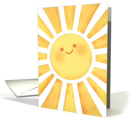 This card features a bright yellow sun with a cute smiling face that covers the entire front of the card, with no message on the outside but an encouraging message on the inside.
