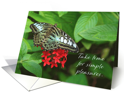 Take Time for Simple Pleasures Clipper Butterfly on Red Flowers