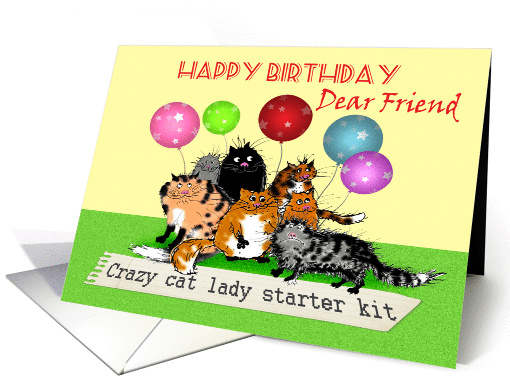 Happy Birthday Dear Friend,Crazy cat lady, humor.