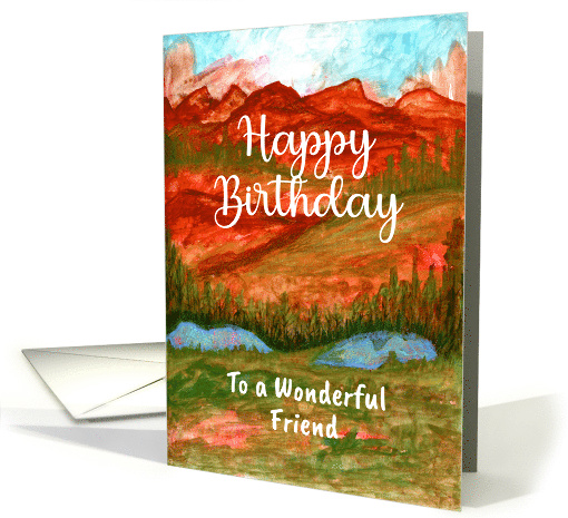 Happy Birthday Friend Valley Landscape Trees Mountains Lakes Painting