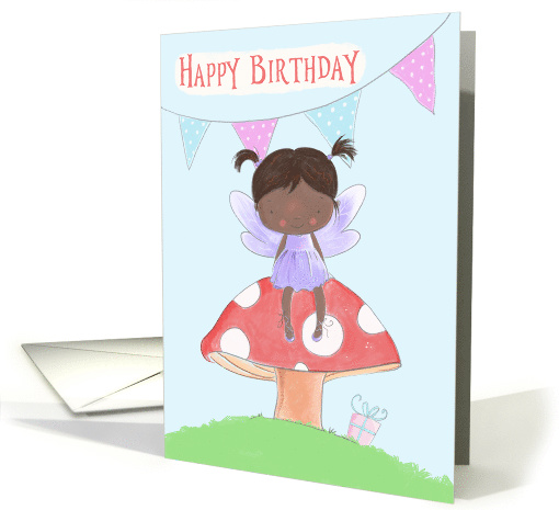Say Happy Birthday to that cute little girl with this cute little african american themed fairy character sitting on a toadstool design. ©DaleSimpson