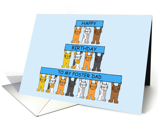 Happy Birthday to My Foster Dad Cartoon Cats Holding Up Banners