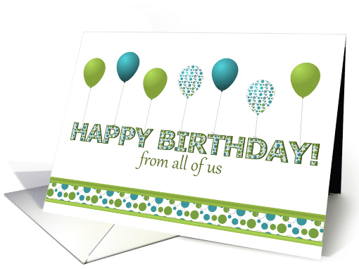 Happy Birthday,From All of Us,Blue,Green,Polka Dotted Balloons