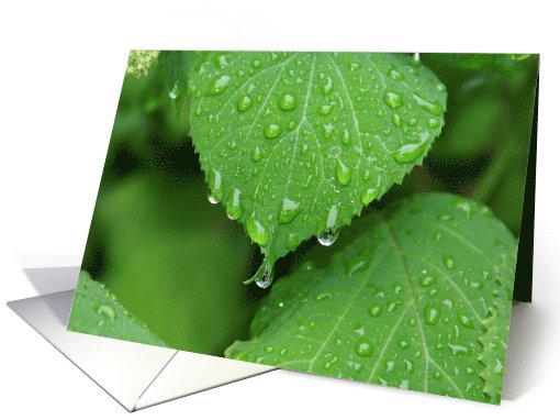Feel Better Soon - Green Hydrangea Leaf with Rain droplet- John Milton quote