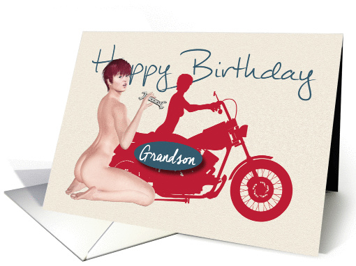 Naughty Pin Up with Motorcycle Birthday for Grandson