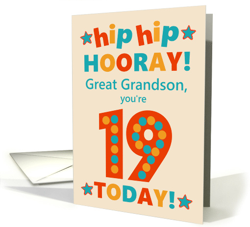 For Great Grandson 19th Birthday Bright Colours Hip Hip Hooray