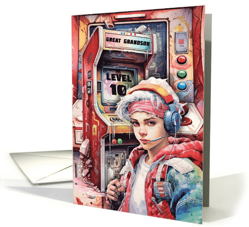 Give your great grandson awesome 10th birthday wishes with this futuristic looking video game design that is sure to appeal to a tween boy.