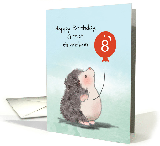 Great Grandson 8th Birthday Cute Hedgehog with Balloon