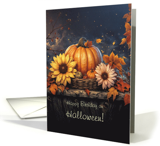 Halloween Birthday with Pretty Flowers Pumpkins Nice Wishes Custom