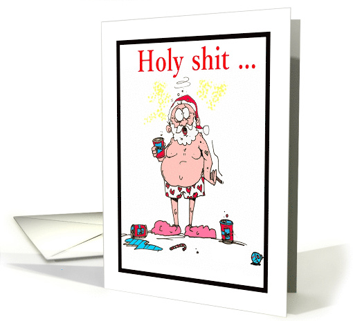 Saint Nick is standing in a bar with his elf friends. The fat man is shit faced drunk again and forgets about Christmas. Holy shit! It's Christmas! A funny comical Christmas card for anyone naughty or nice, so funny you'll read it twice.