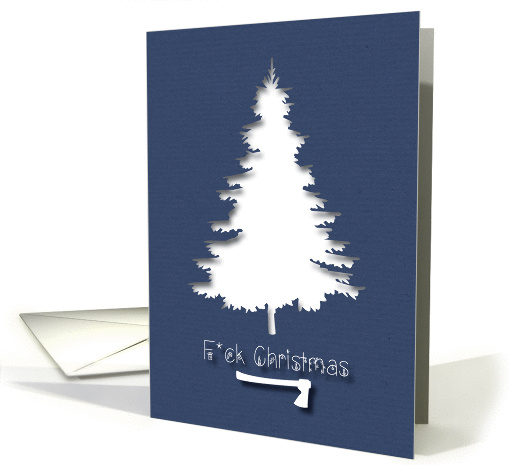 A funny card with a Christmas tree and a hatchet. There is inside a text which you can customize to something very personal.