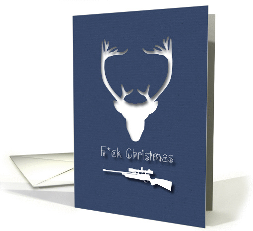 A funny card with a reindeer and a rifle. There is inside a text which you can customize to something very personal.