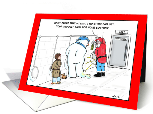 Even this magical Snowman needs to take a toilet break. However, he could have done without a drunken man dressed as Santa putting a damper on things.