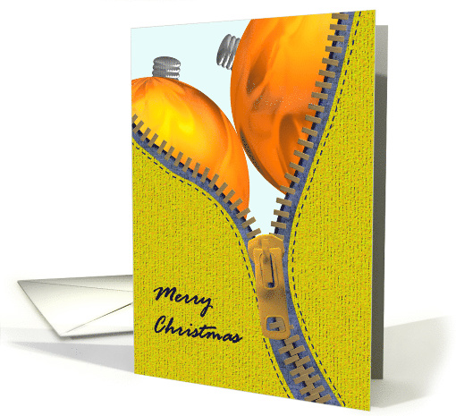 Opening a zip to reveal 2 baubles ... This design also features blue baubles.