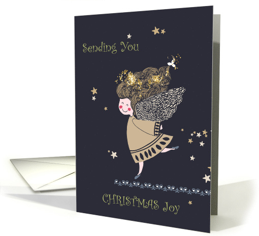 Send this Christmas card with an adorable angel dancing. The front says: "Sending you Christmas Joy".