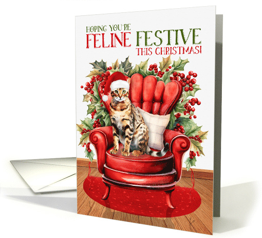 Bengal Christmas Cat in a Santa Hat FELINE FESTIVE
