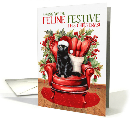 When you're feline festive this holiday season, pass on the happiness by sending this Bombay black cat themed greeting.