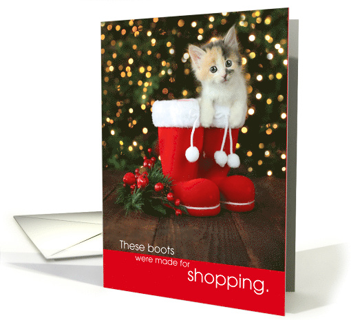 Cute Christmas Calico Cat in Santa Boots Were Made For Shopping