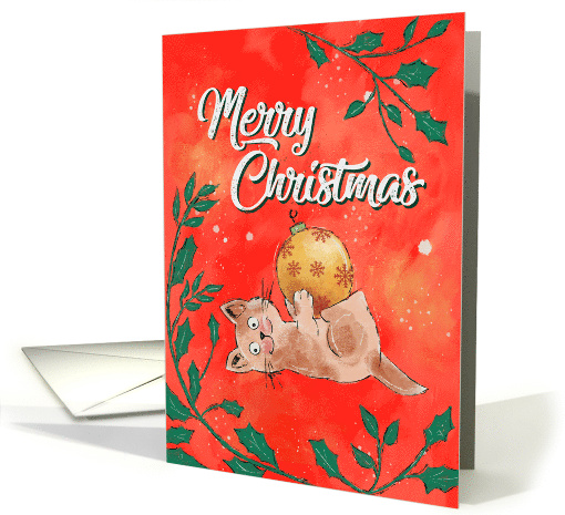 Merry Christmas with a Cute Kitten Playing with a Tree Ornament