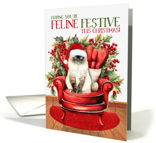 The Himalayan cat owner is sure to love this silly feline themed greeting with festive touches and holiday decor.