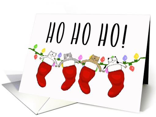 Ho ho ho! Someone's been naughty! Cats like to explore everything and Christmas stockings are a great place to hide. Send a holiday smile to the cat lovers on your list. Original design by S. Fernleaf Designs.
