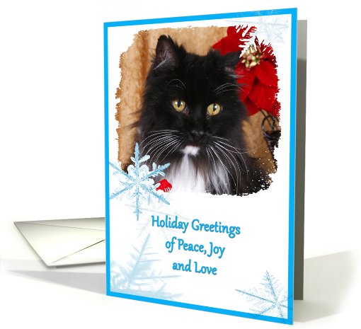 Holiday Greeting Card - featuring a Cat surrounded by blue snowflakes