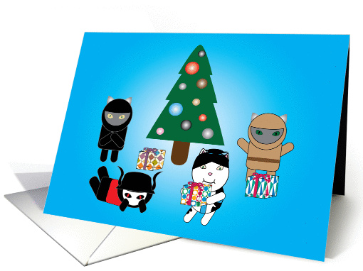 Ninja Kitty, Samurai Kitty, Sumo Kitty and Warrior Kitty are the Kitty Protectors and enjoy the holidays with a tree and gifts!