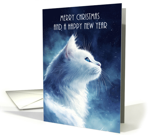Merry Christmas and a Happy New Year with White Fluffy Cat