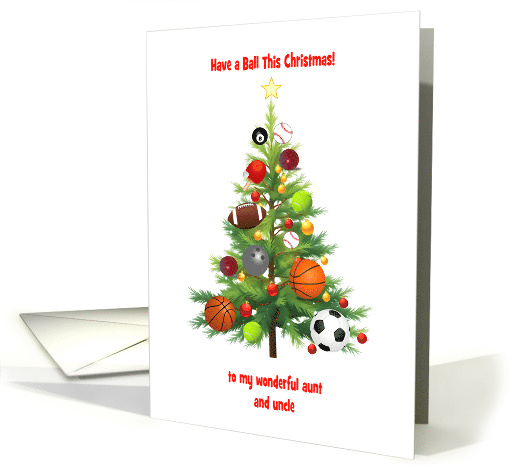 A perfect Christmas card for an aunt and uncle who love sport. Send season’s greetings with a sporty twist! This Christmas card showcases a fun Christmas tree decorated with various sports balls—ideal for anyone who lives and breathes the game. Great for teams, gyms, or sporty families.