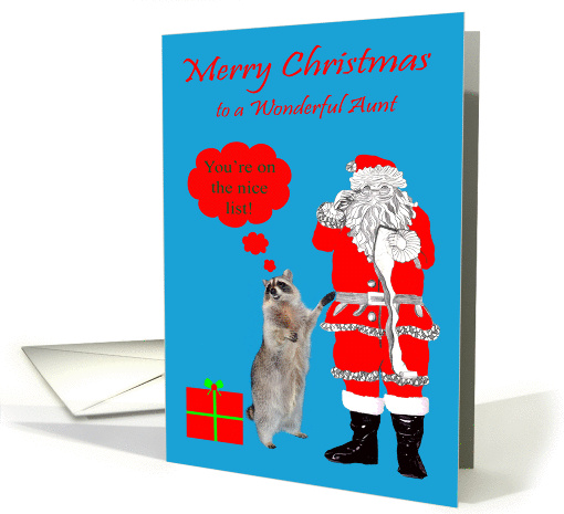 Christmas to Aunt, Raccoon with Santa Claus checking his list