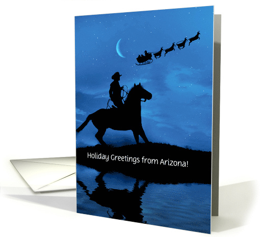 Arizona state cowboy and Santa happy holidays card. You can change up the text on the front too! Send greetings from AZ!