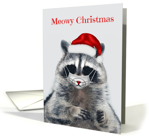 Christmas during Covid 19 with a Raccoon wearing a Cat Mask and Hat