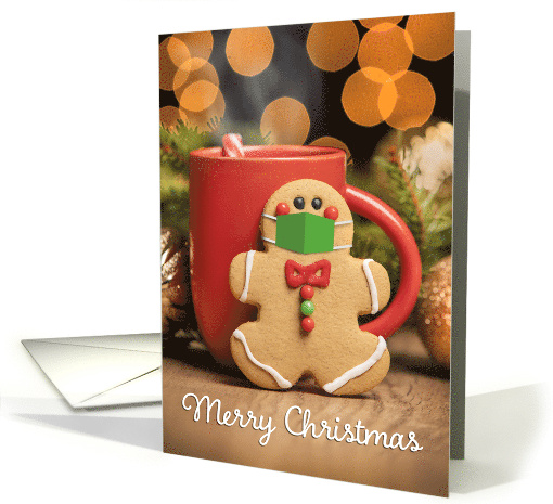 Staying safe in his little covid-19 face mask, this little gingerbread guy with a cup of hot chocolate is a timely and cute way to wish anyone a Merry Christmas as the pandemic continues.
