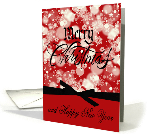 Wish someone a Merry Christmas with a beautiful display of ornaments, snowflakes, stars and bells on a dark red background with a pretty bow and black text. Inside like all GCU cards can be personalized by you if you wish to give it your own personal touch.