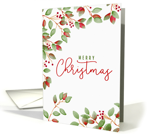 Christmas greetings in fresh and trendy styling with a seasonal botanical design of boughs of holly and red berries for an elegant and classic choice.