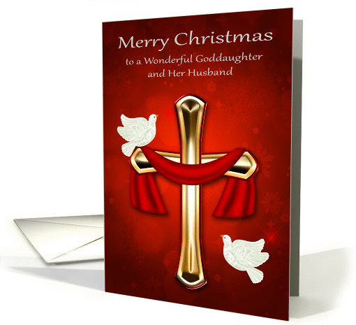 Christmas to Goddaughter and Husband, religious, white doves, cross