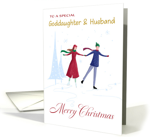 To s Special Goddaughter and Husband, Merry Christmas Greeting card depicting a skating couple on a simple white glossy card. ©DaleSimpson