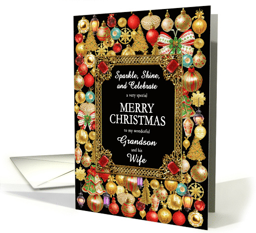 A wonderful Christmas card for your grandson and his wife. Celebrate the season with sparkling ornaments that capture the joy and magic of Christmas. A collection of dazzling ornaments decorates this card, just like the special moments that make Christmas magical.
