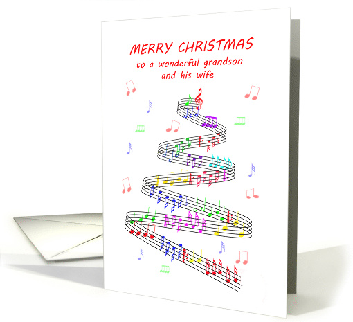 Send your grandson and his wife an unusual Christmas card. A fun Christmas card for a music lover. A musical stave takes the form of a Christmas tree, with colored notes scattered over and around it. Wish Merry Christmas with a very unusual card. This is NOT a musical card, it does NOT play music: