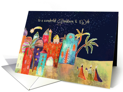 Merry Christmas to my grandson & wife, nativity, oriental town