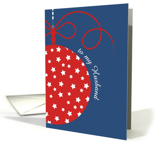 This patriotic Christmas card features an ornament, stars & the colors red, white and blue . A stylish way to send Christmas wishes, American style, to your husband. You can change/edit text inside card.