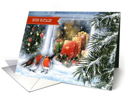 Christmas Greeting Card in Italian with message on front of the card translated as "Merry Christmas ".