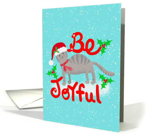 Cute Be Joyful Holiday Cat in Santa Hat and Scarf
