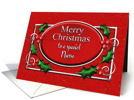 Wish that special Nurse a Merry Christmas with this beautiful red and silver card with fun holly and holly berries and silver swirls