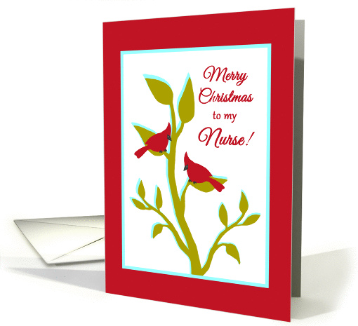 A hand illustrated print on a holiday card of two red cardinal birds in a tree by c.a.teresa to wish a wonderful nurse a Merry Christmas and Happy healthy New Year.This card can be personalized with name, photo and text on inside. Design can also be custom ordered for any occasion by contacting the artist with your request..