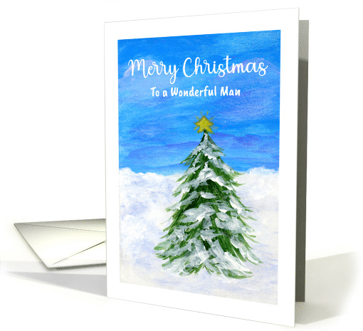 Wish a great man a Merry Christmas with the aid of this lovely Christmas card. An evergreen tree with a star at top is depicted in this design's image, which was derived from an original artwork of a snowy landscape.