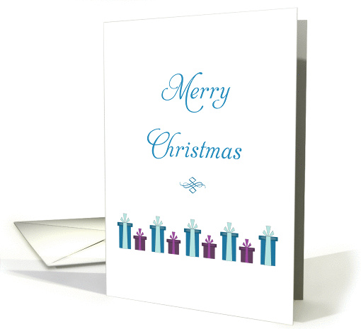 General Christmas card with Merry Christmas on the front and illustrated with purple and blue Christmas presents. Inner verse is customizable. Thank you for visiting Sheryl Kasper Card Store