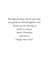 Santa Claus has his school bus packed with his favorite reindeers, Mrs. Claus and a couple of his elves for his morning bus driving duties. This Christmas card makes a wonderful card to give to your bus driver.